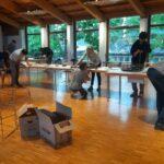 Beim nächsten Helfertreffen wurden dann zuerst die neuen Sitzpolster auf die Stuhlrahmen montiert. Anschließend wurden weitere Stühle zerlegt, was durch die bereits vorhandene Übung schneller als beim ersten Termin von statten ging. Am Ende des Tages waren alle übrigen Stühle zerlegt und noch einmal gingen knapp 100 Sitzflächen zu Erich Schneider.